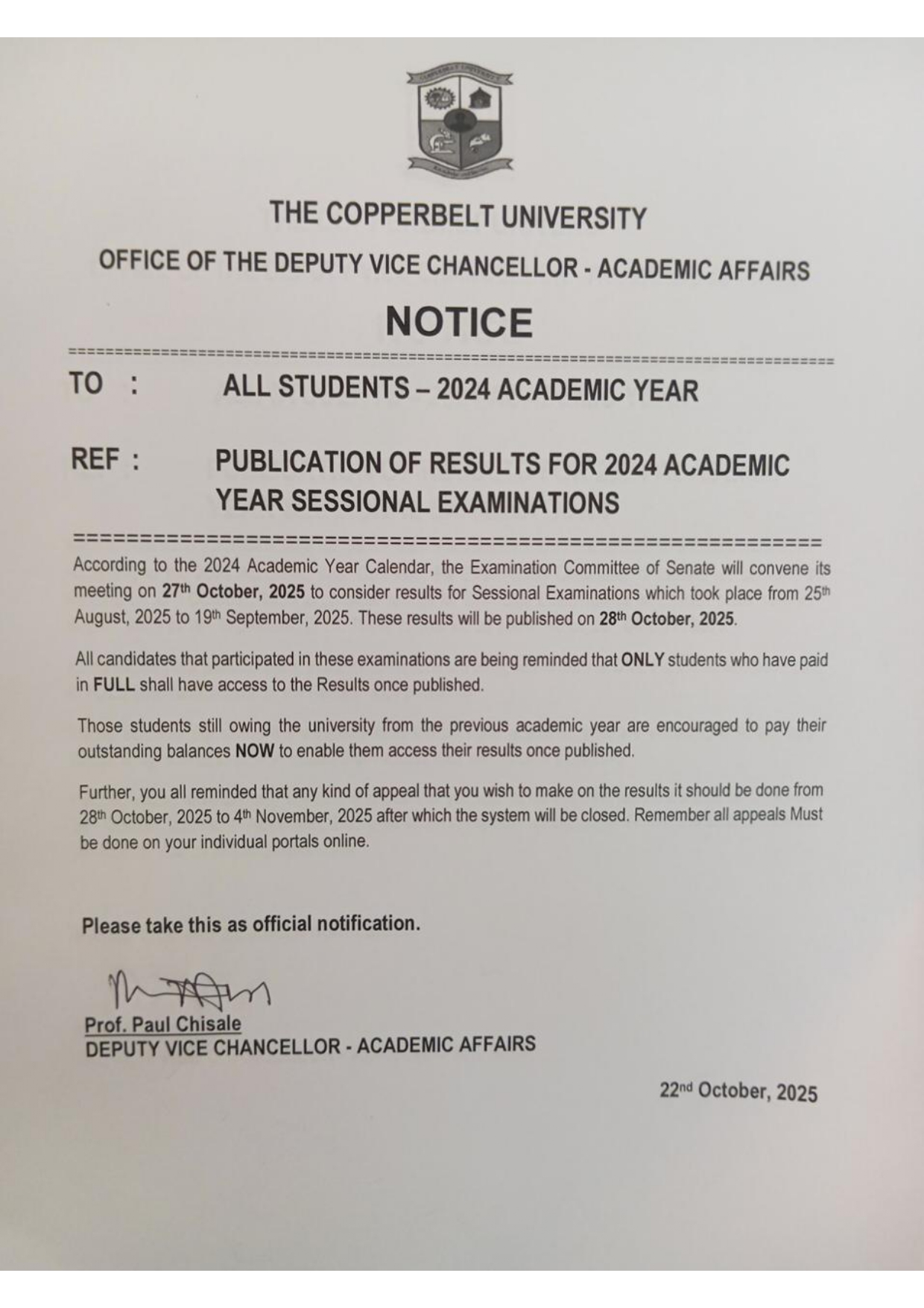 NOTICE TO ALL STUDENTS Publication of 2024 Academic Year Sessional Examination Results